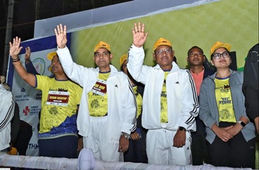 publicuwatch24.-रायपुर। सीएम साय ने आज नारायणपुर में आयोजित “अबूझमाड़ पीस हाफ मैराथन” को झंडी दिखाकर रवाना किया। उन्होंने कहा, नारायणपुर से बासिंग तक 21 किलोमीटर की इस ऐतिहासिक दौड़ में 60 से अधिक अंतर्राष्ट्रीय धावकों सहित 10,000 से अधिक प्रतिभागियों ने उत्साहपूर्वक सहभागिता कर आयोजन को यादगार बना दिया।