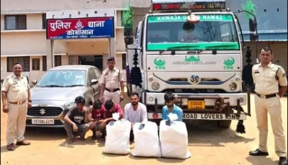 publicuwatch24.-महासमुंद: छत्तीसगढ़ के महासमुंद जिले में नशे के खिलाफ चलाए जा रहे अभियान के तहत पुलिस को बड़ी सफलता मिली है। एंटी नारकोटिक्स टास्क फोर्स और कोमाखान थाना पुलिस की संयुक्त कार्रवाई में अवैध गांजा तस्करी का पर्दाफाश किया गया है। पुलिस ने 47.300 किलोग्राम गांजा बरामद किया है, जिसकी अनुमानित कीमत 23 लाख 65 हजार रुपए बताई जा रही है। पुलिस ने इस मामले में तस्करी में यूज किए गए ट्रक, कार, मोबाइल और नगदी सहित कुल 59 लाख 51 हजार रुपए की संपत्ति जब्त की है। कार्रवाई के दौरान तीन आरोपियों को गिरफ्तार किया गया, जबकि दो नाबालिगों के खिलाफ विधिसम्मत कार्रवाई की गई है।