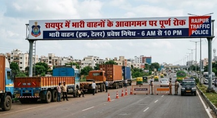 publicuwatch24.-रायपुर। शहर में सुगम यातायात, लोक सुरक्षा एवं आवागमन को व्यवस्थित बनाए रखने के उद्देश्य से पुलिस कमिश्नर संजीव शुक्ला द्वारा मोटरयान अधिनियम 1988 की धारा 115 के तहत रिंग रोड-01 एवं रिंग रोड-02 की सीमा से शहर की ओर आने वाले 19 प्रवेश मार्गों से शहर के भीतर मध्यम एवं भारी मालवाहक वाहनों के प्रवेश पर प्रतिबंध लगाया गया है।