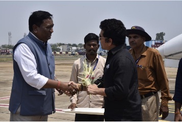 publicuwatch24.-जगदलपुर। भारत रत्न और भारतीय क्रिकेट टीम के पूर्व कप्तान मशहूर क्रिकेटर सचिन तेंदुलकर के बस्तर आगमन पर माँ दंतेश्वरी एयरपोर्ट जगदलपुर में वरिष्ठ अधिकारियों द्वारा आत्मीय स्वागत किया गया। इस दौरान कमिश्नर बस्तर संभाग डोमन सिंह, आईजी बस्तर रेंज सुंदरराज पी, कलेक्टर आकाश छिकारा, पुलिस अधीक्षक शलभ सिन्हा, एसडीएम ऋषिकेश तिवारी एवं विपिन दुबे सहित अन्य अधिकारियों ने आत्मीय स्वागत किया।